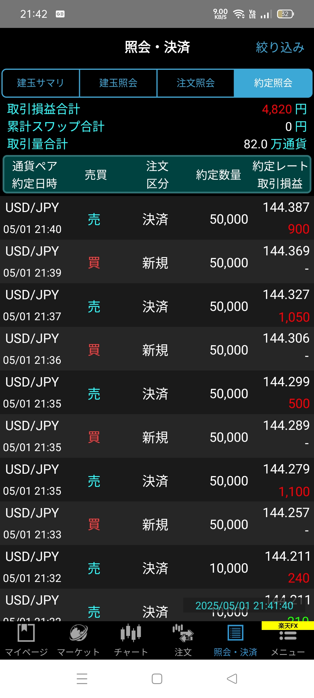 約120万円をポイポイ使って今日もまた稼いじゃったぽ♪スワップ抜きで100万円を目指すぽ♪計算がめんどいぽ♪取り敢えず明日の朝までギリギリやっておくぽ♪