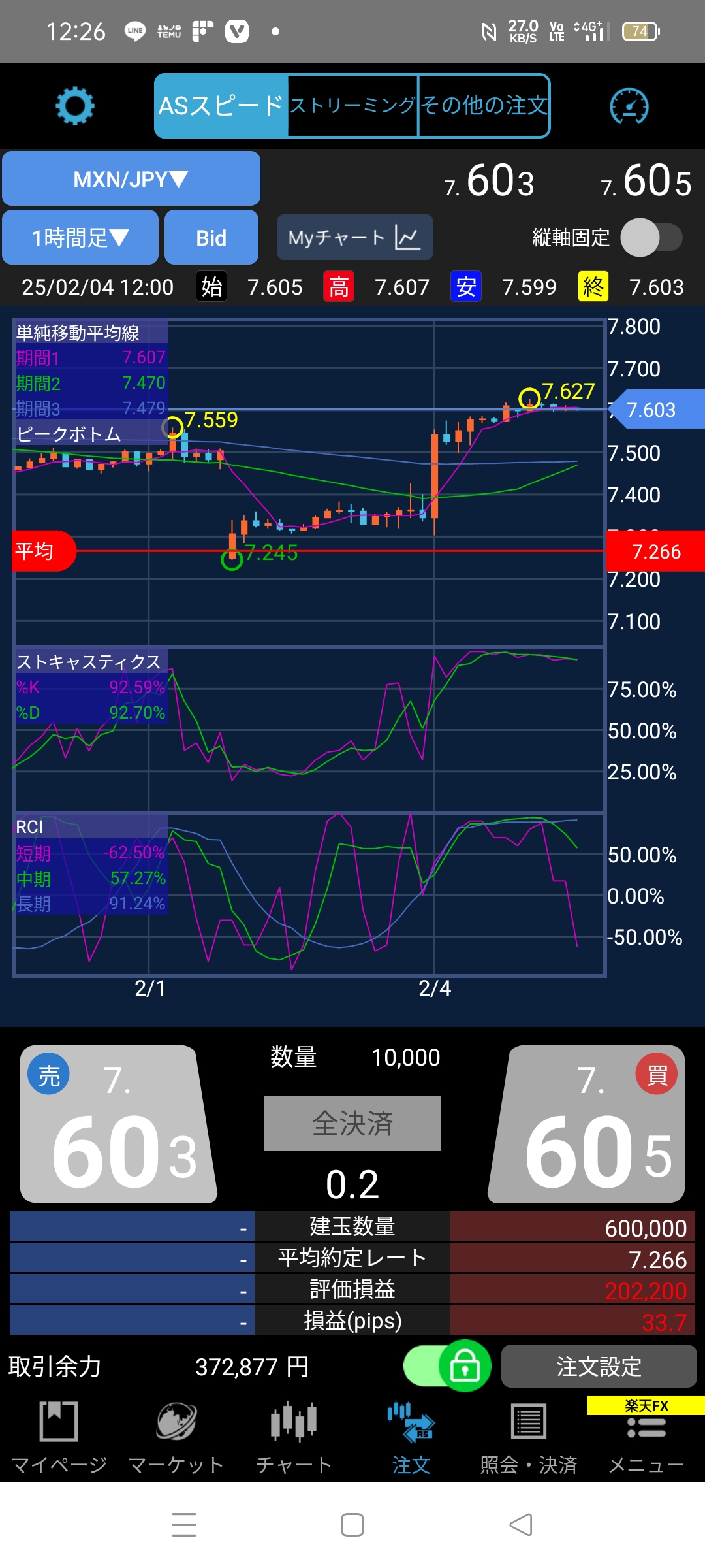 17時30分に見てて家に着いたら54000円位にぽ!?昨日書いた買いポジションの7.432じゃなくて7.266の 理由を書かなくっちゃだぽ?充分稼いだので長いスパンスでやろうかと思い7.2円台をチョイスしたんだぽ♪オマケに600ロットの18万円だぽ♪7.2円台なので強気で行ってみたぽ♪1日ののスワップポイントは1200円だぽ♪なので1ヶ月約30日なので3万円だぽ♪スワップポイントはいくら稼いでも確定申告をしなくて良いから稼ぎ放題だぽ♪利益出ているから利確したいけど既に6万円利益出てるから残り14万円までしか稼げないからってスワップポイントで稼ぎたいぽ♪7.266より下回っても損切りはしないぽ♪6.899まで下がって再び上がったところで損切りタイミングだぽ♪そんでポジション変えするぽ♪推しの子3期は2026年ぽ♪楽しみだなぁぽ♪楽天FXの自慢日記を書いていて数時間後に見てみたらなな! なんとぽ♪7万円にぽ♪1200円×2ヶ月(60日)=72000円なのでこのまま保有だぽ♪