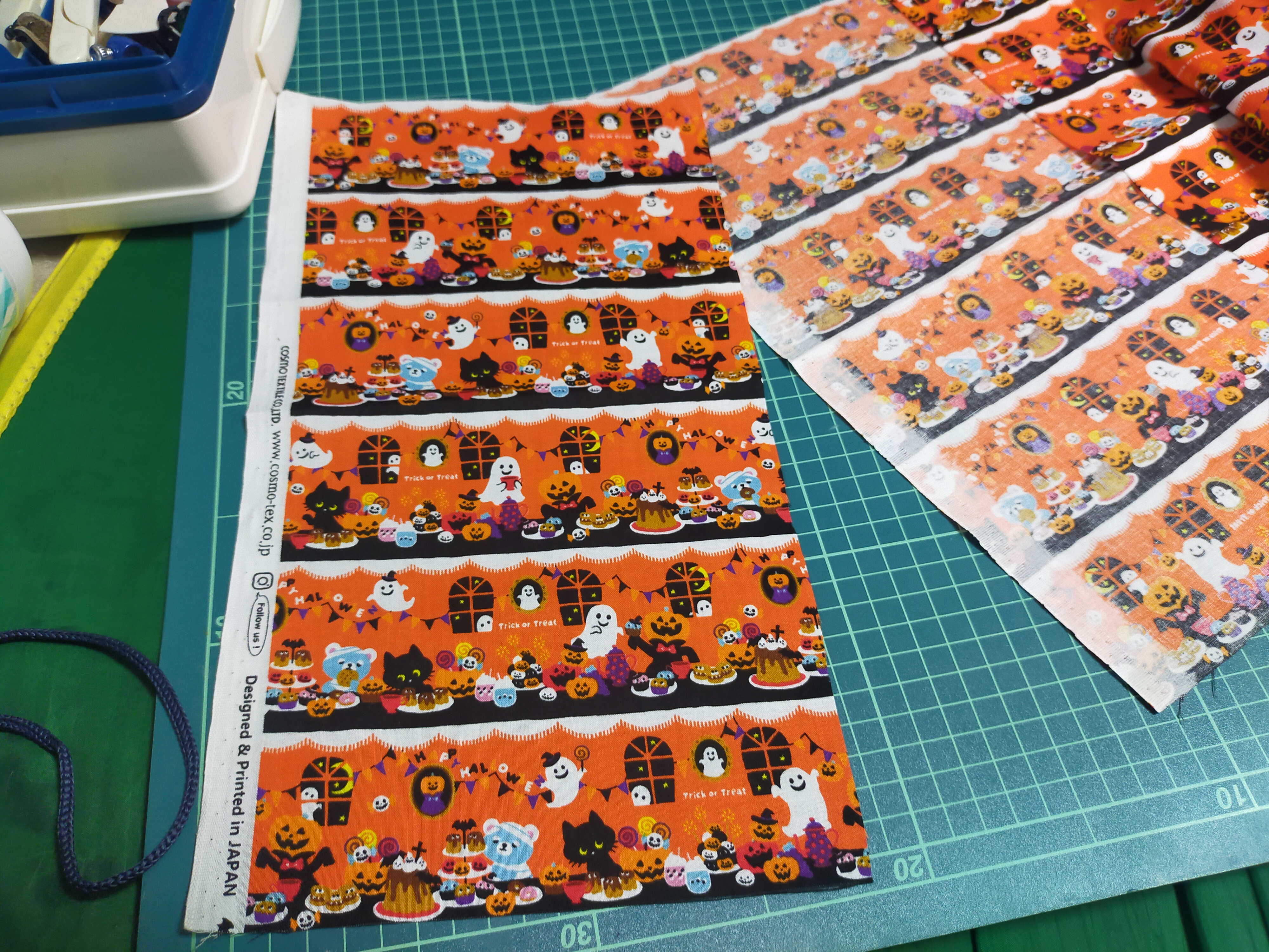 余裕の18cmに切るぽ♪余分な部分を切るぽ♪下の黒い部分が少ないから次の柄から使うぽ♪使いやすい6等分に別れているから切出しが簡単だぽ♪縫う順番を間違えて蓋の部分が縫えなくなってしまったぽ♪面倒臭がらずミシン糸をオレンジ色に変えとけば良かったと後悔してしまったぽ♪まだ完成してないけど途中経過を更新しにきたぽ♪この上でアイロンかけたら溶けてしまったぽ!?アイロンダイ台は急遽Amazonで注文しましたぽ♪なぜAmazonかと言うと不正操作なんとかかんたらで制限が掛かっていてメインIDが使えないんでふぽ♪話を戻すぽ縫う順番を間違えて蓋の部分はボタンパンチでボタンを付けましたぽ♪★✩★ハロウィンジャンボ宝くじ入れだぽ♪★✩★完成したので宝くじを買いに行ってくるぽ♪最近不運な事が立て続けに起こっているから当たるはずだぽ♪【マラソン中はポイント2倍】賑やかスイーツパーティー ハロウィンプリント(シーチング)ハロウィン おばけ 黒猫 ネコ ネコ柄 猫柄 かぼちゃ コスモテキスタイル【生地・布】AP45101-3 数量3(30cm)から10cm単位価格:92円(税込、送料別) (2024/10/16時点)買ってきたぽ♪なななんとサイズが合わないだとぽ!?とにかく全パターンを10枚ずつ買っといたぽ♪