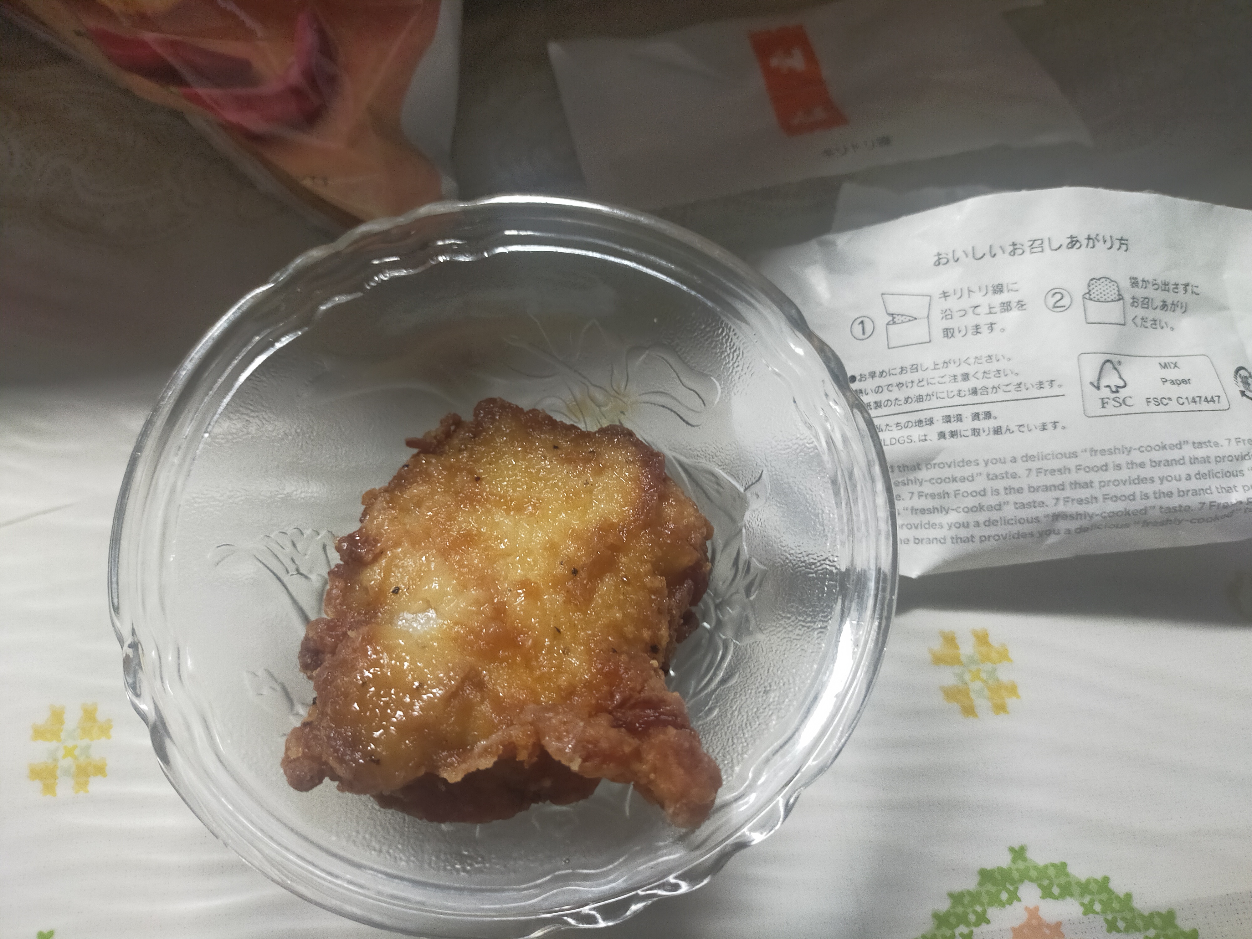用意するのは普通のななチキだぽ♪とうま辛チリ味のポテチの2種を用意するぽ♪ななチキの上にポテチを掛けるぽ♪粉々してななチキに絡めるぽ♪そして一口パクリぽ♪そしてモグモグ上手いぽ♪二口目もムシャコラ上手いぽ♪結論から言うと辛さ控目塩分強めでしたぽ♪