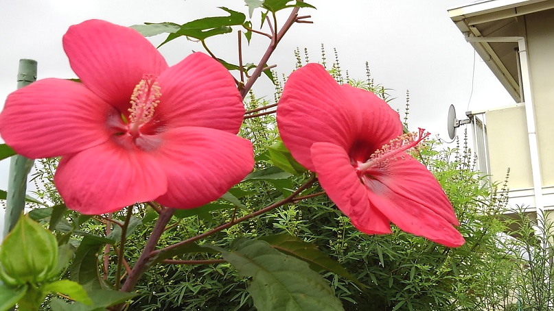 毎朝鮮やかな色のタイタンビカスが目に飛び込んで来ます