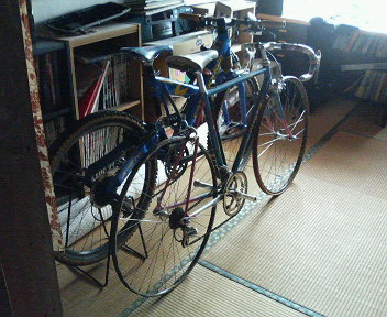 佐賀の倉庫にて・・。台北日本人学校の卒業アルバムを眺める。二十年ぐらい音沙汰が無かった友人もネットで繋がる現代社会・・・。「あー、この人か、この前ネットで書き込んだ人・・・。今はどんな顔しているんだろうとか・・・」と思いにふけっていると目の前に秘蔵の2台の自転車が。 久しぶりに乗ってみたいという衝動に駆られ、各部を点検してみました。すると出てくるは出てくるは不具合のオンパレード!!手前の高校時代のバトルマシン、クロモリ・ロードはハンドルとステムが要交換・ケーブルは全部死んでいます。タイヤもランニングコストが高いチューブラータイヤで乗り出すのに3万円は要するでしょう。奥のキャノンデールのスーパーVは比較的に新しい(といっても、もうすぐ10年落ちですが・・)ので軽症ですが、アメリカ設計(台湾製!?)リアハブのシールドベアリングが死亡していてハブの交換が必須です。ホイール組み換えは出費がかさみます。一時間ほど苦悩して得た答えは・・・、「先延ばし!」 レストアはまたの機会に・・・。とりあえず通勤号で脂肪燃焼してみます。