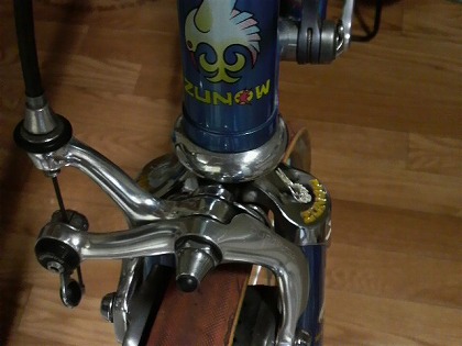 今日4ドアis(BMW E36)にハイオクを入れました。リッター187円!!常にパワーバンドをキープして運転するクセがある私にはツライ!!日常生活での行動半径を少し広げる為に佐賀の倉庫からロードレーサー(自転車ですよ)を取ってきました。高校時代に組んだこのマシン。当時は真面目に競技に使っていましたが・・・。今ではすっかり時代遅れの代物になってしまっています。Wレバーといって変速レバーがフレームに付いていますが今の自転車はハンドルから手を離さずに変速出来デュアルコントロールレバーが一般的。しかもフレームの素材も今はカーボンやアルミが主流。・・・・。変速機も当時は8速が高性能の証でしたが最近は11速も発表されました。現行車と比較して重くて乗りにくいかもしれません。ですがラッキーなことに現行のロード車に乗ったことがない私には最新のロードの軽さや乗りやすさなど知る由もありません。通勤プラスアルファの使い道ならこれでOKでしょう。さすがに組んでから20年も経過するとあちこち痛んでいますが(リアタイヤが無い!)、しっかりメンテナンスして楽しみたいです。競技で使用するわけではないのでハンドルを楽なポジションのものに代えたりと修理ついでのカスタムも楽しみたいですね。