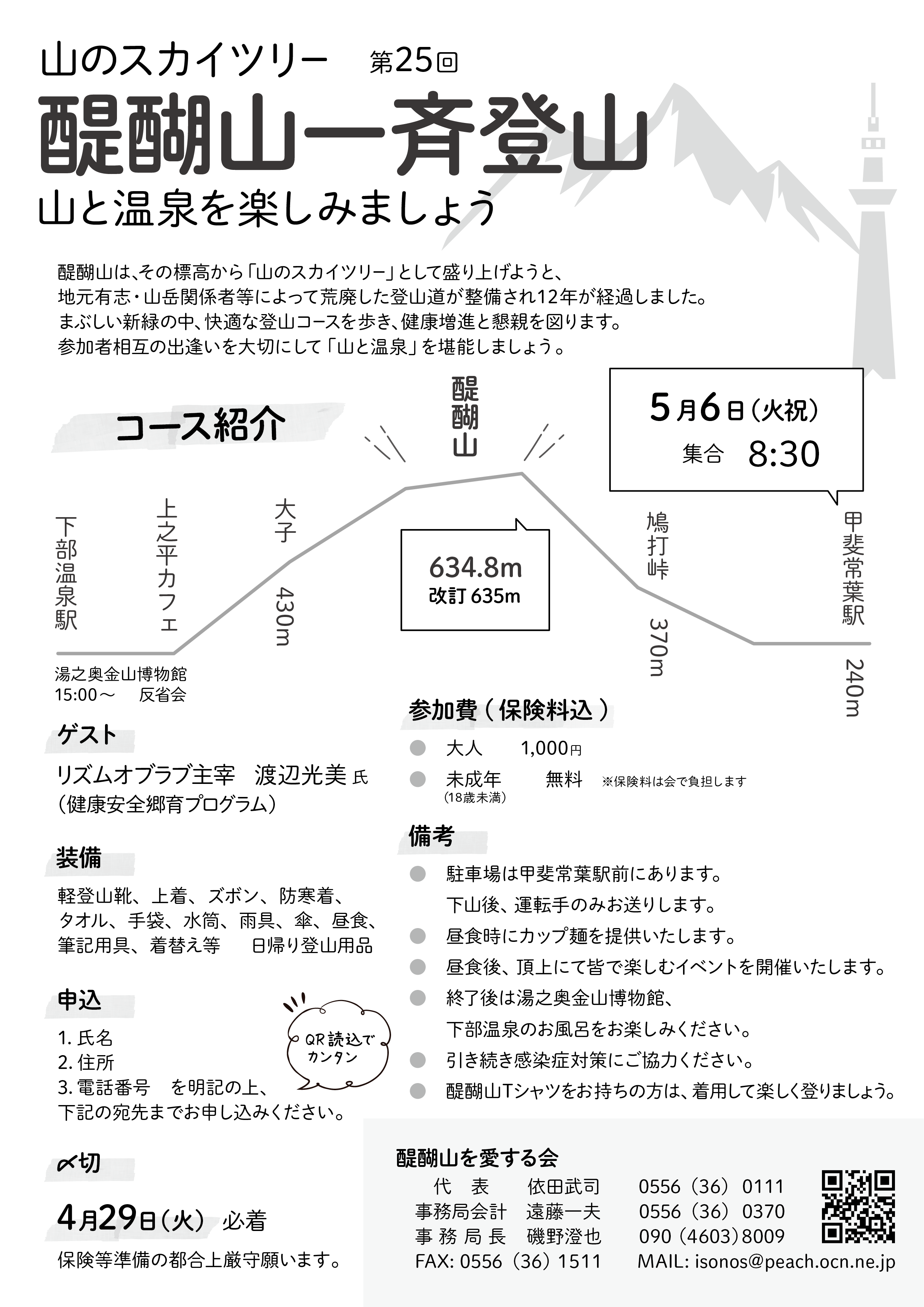 信玄公の隠し湯下部温泉郷から、標高634メートルの醍醐山が見えます。 下部のスカイツリー醍醐山は、豊かな自然で麓の人々を見守り愛されてきました。 多くの方に醍醐山と下部温泉を訪れていただきたいと願う「醍醐山を愛する会」のブログです。