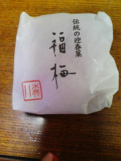 新しい1年が始まりました。私の人生もわずかずつですが、たしかに前に進んでいます。今年もみんなに支えてもらいながら一歩一歩進んでいくのみ!です。さて、今年の目標は・・・・ 1.早起きして窓をあけ、朝のお祈りを続けます。 2.スローフーズの野菜生活をこころがけます。 3.9時以降は食べません。 4.サプリメントを毎日続けます。 5.一日にひとつわが子を認める声かけをします。 6.読んだ本の読書記録を忘れずにつけます。 7.習字は少なくとも2か月に一度は提出します! 8.仕事は締切日には提出済みになっているようにします。 9.サークルには月に一度は参加します。10.教室では子供たちの隣に行き、文字どおり同じ目線で考え、感じる毎日にします。1~4は何とか努力すればできそうだけれど、5~10は、ちと欲張りすぎかなぁ。(本当のところ、始める前から、自信がないのですが・・。)でも、理想は高く、常に前を向いていこう!!私一人じゃないし!!いつも主人がついててくれるんだし!!我が家のお正月のお菓子森八さんの福梅