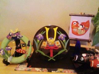来週は娘の学校の家庭訪問があるので玄関をちょっと5月風に飾りました。インテリア&和雑貨 京都 夢み屋さんでひとつひとつ買いためた皐月飾り。右端にちょっと見えるのは先日主人のお墓参りに行った時ふろしき市をしていて買ったもの。赤い鯉と黒い鯉とどっちも欲しくてなかなか決まらず迷っているとおばさんがすっごくおまけしてくれました(*^_^*)今日は朝から雨です。昨日の夜、目ざまし時計と携帯電話のアラームを切ってねました。いつものように、5時半頃いちど目が覚めましたが、2度寝すると、つぎに目が覚めたのは9時過ぎでした。雨も降ってるし、ごそごそ家を片づけています。先週からまたルーキーズの再放送をしています。焼きあがったパン(あまりいいできではなかったのですが)をかじりながら娘と二人で見て、泣きました。今日は晩御飯も冷蔵庫の中のあまりもので作ろう!!今日はちょびっとぼ~っと休養Day.