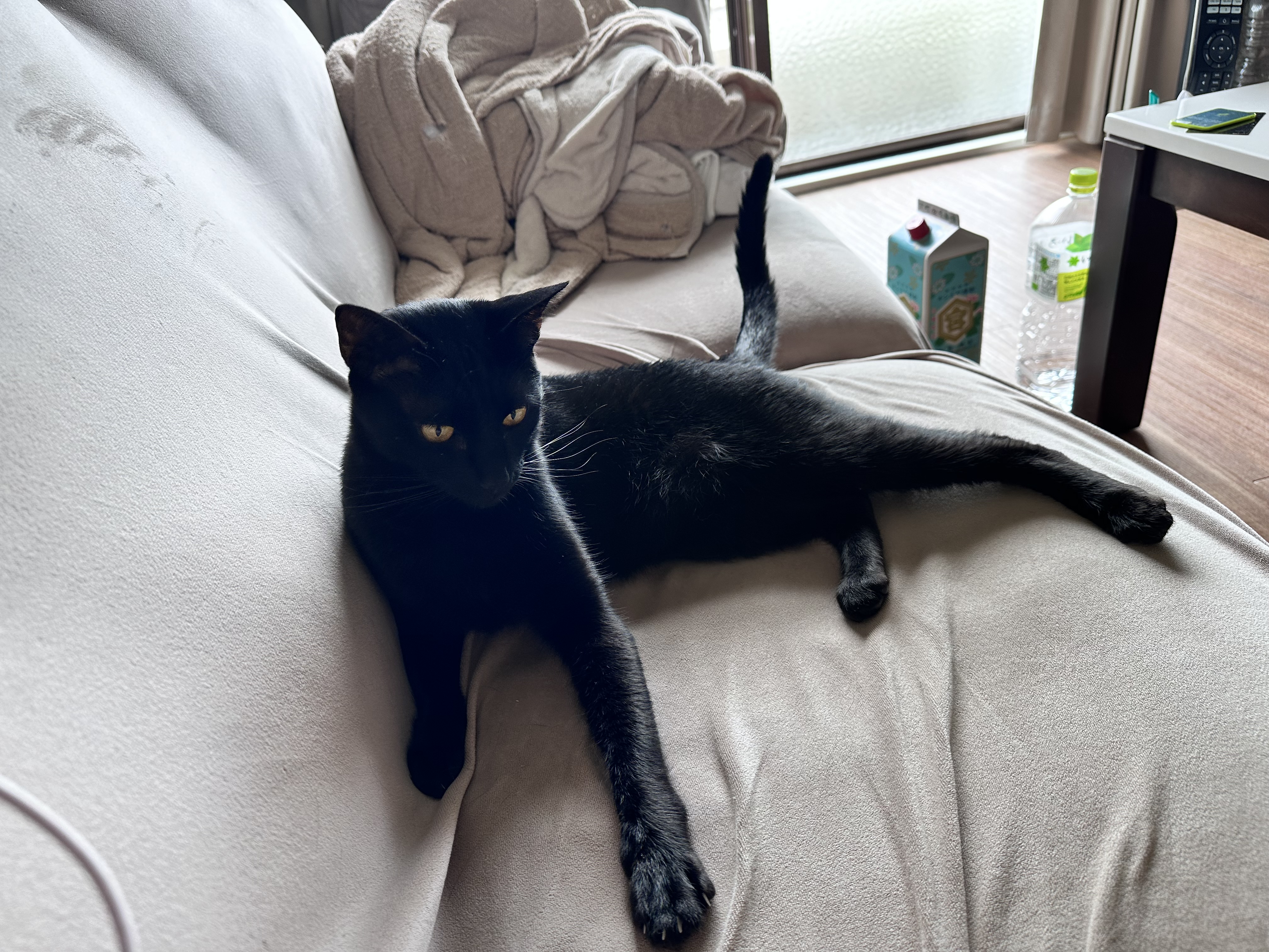 猫は液体のお手本のように平べったくなちゃってるんですねーこれ
