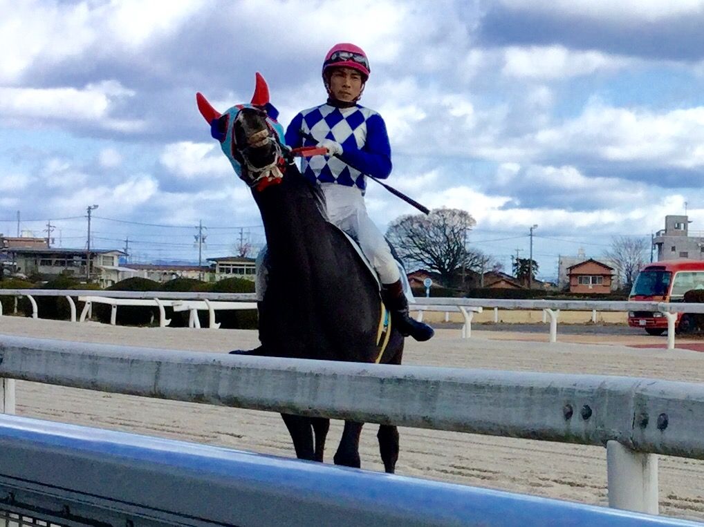 ★簡単にJRAを振り返ります。土日とも推奨レースは3レースづつ。東京8レースの「ラインフェルス」は不発。東京9レースの「レジェンドセラー」は3着までで、馬券はハズレ。最後の東京10レースは馬連を選択し、本線で的中も、逆転プラスには届かず。そして日曜。狙い馬リストの「ヒストリア」(東京10R)は、いい脚を長く使って2着に来てくれたのですが、1着になった最低人気・浦和出身の「ライズスクリュー」の大激走なんて、誰が買えるのでしょうか(距離短縮が良かったか)1番人気「レイズアベール」が大幅な馬体減で、2・3着馬のワイドは押さえてましたが、競馬にはまれに、事故に会ったような出来事は付き物ですが・・・『きさらぎ賞』は道悪の巧拙を問われるくらい降雨の影響が残ってしまいました。結果というか、京都の方はそんな馬場になることも予測できましたし、道悪がプラスになる馬とマイナスになる馬をネット予想に反映できたのは良かったと思います。道悪の分、「サトノアーサー」からの馬連と3連複を的中できましたが、ここは抑え気味の馬券で、今週の勝利の決定打にはなりませんでした。『東京新聞杯』は「エアスピネル」を軸馬にしていました。1・2着馬とも買い目には入れていましたが、狙い馬リストの「ブラックムーン」を絡める馬券しか買ってないので完敗でした。まんまと「ブラックスピネル」のデムーロJの術中にハマった感じ。逃げ馬に32秒7で上がられては、同じ上がりタイムで「ブラックムーン」が追い込んでも届きませんわ。ベタな3連複なら10点で16倍ですから、利益は出たのですが、「ブラックムーン」に気があったので仕方ありません。京都のプラス分の2倍以上のマイナスでした。★月曜からは笠松けいば『如月シリーズ』が、連続5日間の日程で開催されます。前開催は最終日(1月27日)を除いて、逃げ馬は苦戦傾向で、開催を通して『外の2番手』に付けたお馬さんの好走(人気薄の激走含む)が目立ちました。今開催の前に砂の補充があったようで、また逃げ馬には厳しく、外差しが決まる馬場が予想されますが、日曜の雨の影響がどこまで?やっぱり、実際の馬場を見て判断されたようがいいようです。そして池田敏樹ジョッキーが復帰します!写真は昨秋の『笠松秋まつり』での池田騎手。※これでケガをしたのではありません。笠松本場での「大黒社」の場立ちの予想は、水曜と木曜の2日間営業します。(ネット予想の方もご利用下さい)★「大黒社ネット予想」は、ここをクリック。