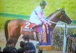 ★名古屋けいば・若草賞シリーズが終了。最終日を飾る『アクアマリンオープン』は大波乱に。勝った「ゴールドピューマ」は展開的にハマる場面は考えてましたし、逆に逃げられない「ハナノパレード」は消してました。それでも、二強がどちらも馬券圏外に去るとは夢にも思わず・・・ハズレ。第7レースの『OS☆U蝶野晶美生誕&卒業記念』は、岡部誠ジョッキー鞍上の「デルマサダヤッコ 」が快勝!これで木村良明オーナーの連続勝利記録が、34ヶ月に。レース名的にも、アイドルヲタクの木村さんには負けられないレースだったようです。写真は木村オーナー提供。安部幸夫先生撮影。その岡部誠ジョッキーが、第5レースの「テイエムタービン」が地方競馬3200勝を達成!しかも本日5勝の固め勝ち。リーディングも独走中!今開催のネット予想は、3日目までは平均点くらいでしたが、4日目の木曜日が不調。でも最終日の金曜日が絶好調で、巻き返せました。★さて今回は佐藤友則ジョッキーの師匠でもある井上孝彦調教師のジョッキー時代の思い出話をひとつ。以前、このブログにも書いた事があったはずですし、東海公営競馬のオールドファンなら、憶えてられる方も多いかと思いますが、1993年の地方競馬招待『テレビ愛知オープン』(芝1800メートル)当日のことを振り返ります。この時は、中京が改装工事のために京都競馬場で行われ、JRAの「イクノディクタス」が優勝したのですが、笠松から参戦した井上孝彦ジョッキー鞍上「タイプスワロー」が、果敢に2番手に付け、見せ場たっぷりの3着。「エイシンテネシー」「スタントマン」など、重賞レースの常連達にも先着するという大健闘でした。このレースでは着外に敗れましたが、笠松の「ロングニュートリノ」(松原義夫騎手)や、名古屋の「ヒデノデュレン」(桜井今朝利騎手)という、東海の重賞戦線で一時代を築いたお馬さん達の出走もありました。しかしながらこの日、もっとも東海のファンを熱くさせたのは、第9レースの『ゆうすげステークス』かもしれません。元お手馬で中央入りしていた「ホクテンホウ」に乗るチャンスを得た井上孝彦ジョッキーが、好スタートを決め、好位のインで脚を温存。直線は外目に出し、逃げる「ユキミザケ」を捕らえ、そして追ってきた「ファンドリモアー」や「トーワウィナー」を振り切り 見事、1着でゴールイン!『乗りなれた笠松の井上騎手、勝利へエスコートしました!』KBS京都の宮本アナの絶叫と共に、井上ジョッキーの豪快な追い方が、今も強く印象的に残ってます。単勝が3880円で、馬連でも万馬券(馬単もない時代)と、応援馬券を買った東海公営のファンを喜ばせました。写真は、競馬中継から撮った「ホクテンホウ」の様子ですが、オーナーの竹内延光さんの馬主服が、佐藤ジョッキーの勝負服とそっくりなのは、やっぱりそんな縁からかな。★ここで毎週、土曜の夜に開催している『サウナイーグル競馬塾』の告知を。私が塾長を務め、日曜の重賞レースを主に検討するイベントですが、ご参加の方々には「無料招待券」や「食事券」などをゲットできる特典も用意されています。『サウナイーグル』(男性専用)さんをご利用の方は、ご自由に参加いただけます。競馬初心者の方もベテランの方も、お気軽にお越しください!土曜夜の9時30分からです。※「サウナイーグル」最寄の「名鉄知立駅」から「中京競馬場前」までは電車で10分弱という近さです。また今年も「サウナイーグル」さん主催の『高松宮記念観戦ツアー』を開催します。土曜夜の「競馬塾」でシッカリ勉強して、その勢いのまま、中京競馬場に突入するというプランです。もちろん高松宮記念当日は、自分も中京競馬場に行きます。ただ今「サウナイーグル」さんで参加者を募集中です。では皆さんの週末のご幸運をお祈りしております。★「大黒社ネット予想」は、ここをクリック。18日の土曜分の中央版「大黒社ネット予想」は、すでに配信しておりますが、19日の日曜分の予想は、土曜の深夜2時頃に配信いたします。(月曜分の予想は日曜夜10時頃配信予定)※配信情報はツイッター @daikokusya でもお知らせしています。