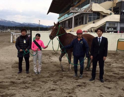 ★やっぱり公募するそうです。『笠松競馬大型ビジョン愛称募集!』公式ホームページより。思えば、1995年の秋に、名古屋競馬場に大型ビジョンが設置された時も、主催者からの愛称募集がありました。自分が保存してある当時の資料によると・・・優秀賞1点 賞金10万円。佳作10点 1万円相当の商品券。まあ今回の笠松に比べ、グッと高額でしたが、当時の時代背景ってことで。その頃、堅気の会社員だった私も、名古屋の愛称募集には応募しました。『ドリームビジョン』『エキサイトビジョン』『ダイナミックビジョン』など、ハガキに書いて応募した記憶があるのですが・・・採用されたのは『グランビスタ』だって。ビジョンじゃないのかよ~って、苦笑いするしかなかったのでした。ぜひ皆さん、笠松競馬の大型ビジョンに素敵な愛称をお願いしますぅ。余計なお世話ですが、『マックルビジョン』は、ベタ過ぎてやめた方がいいような気がします(笑)★本日の木村オーナーのお目当ては、幕張メッセやパシフィコ横浜でもなく、浦和競馬場だったそうです。藤田菜七子ジョッキーとの写メ会に、ご満悦の様子。サインは・・・さや姉が、競走馬の「サヤネエ」を応援しているらしく、菜七子ちゃんにサイン貰って、さや姉本人にプレゼントするつもりです。(木村オーナー談)※さや姉とは、女性アイドルグループNMB48の山本彩さんの愛称(私のウイキ調べ)はたして菜七子ジョッキーの笠松参戦はいつ?※昨年の『菜七子イン名古屋けいば』の様子。★水曜の名古屋では、東海地区でデビューしたお馬さん限定の『中京ペガスターカップ』が行われます。新設重賞ってことで、再度「グレイトデピュティ」に騎乗する島崎和也ジョッキーには、初重賞勝ちの期待が!初日の名古屋ですが、前半が54秒台も多く緩いペースが多く、走破タイムが遅いのは当然ですが、上がりタイムもかかってますし、時計のかかる馬場となってます。岡部誠ジョッキーが5勝の固め勝ち。塚田隆男調教師が、通算1100勝達成!★名古屋けいば・開催中!「大黒社ネット予想」は、ここをクリック。