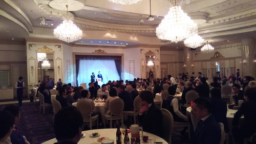 ★土日とも推奨レースは4つ。中山9レースの「サトノキングダム」は、まあ先着を許したのは同馬主ですし、久々ということで仕方ない結果か。あえて2着付けの3連単もオススメしましたが、自分は安くても馬連を本線で。中山10レースの三頭ボックスはハズレ。『金鯱賞』は「ヤマカツエース」を本命視。相手は6点でしたが、「ロードヴァンドール」との38倍の馬連が的中。3着馬はヌケで3連複はハズレましたが、ゴールの瞬間は「スズカデヴィアス」に差されたように見えましたからホッ。そして『アネモネステークス』は「ライジングリーズン」の1着固定で、予想は3連単まで的中しているのですが、テンションが高いパドックを見て少額勝負に切り替えてしまいました(その分、ディアドラとの馬連は厚目に買いましたが)そして日曜。中山5レースの「トータルソッカー」は2着でしたが、ここは馬連の本線で的中。中山10レースの「グレーターロンドン」からも馬連でしたが、11倍ならまずまず。『フィリーズレビュー』は「レーヌミノル」を中心視。直線でなぜ?内にささった感じで、「カラクレナイ」の末脚に屈しました。安い馬連は押さえてましたし、「ゴールドケープ」は4番手に評価してましたが、3連単は1着固定でハズレ。『中山牝馬ステークス』は「ヒルノマテーラ」から穴狙い。レースの上がり3ハロンが、34秒9。この流れで馬券に絡めというのは、無理な注文だったでしょう。勝った「トーセンビクトリー」は好位のインで絶好の立回り。「マジックタイム」は負けて強しの2着でした。3着の「クインズミラーグロ」も勝ち馬の直後のインから・・・結局、中山名物・展開競馬になってしまいました。今週も土曜がプラス、日曜がマイナスという結果でした。★名古屋けいば『若草賞シリーズ』が開幕します。「大黒社ネット予想」は、ここをクリック。★3月12日の日曜日、佐藤友則ジョッキーの『平成28年笠松競馬リーディング祝賀会』に出席させていただきました。凄い人達が勢ぞろいで、緊張してしまい上手く写真が撮れませんでした。一番、まともな写真がこれ・・・大抽選会にて、中日戦の入場券が当たって喜ぶ、ヤクルトファンの原田オーナー❗ 友則ファンの皆さん、すいません。続きは次回のブログで。