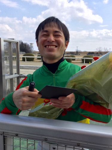 ★いろいろ立て込んでいて、更新がおくれました。木曜の『筒井勇介騎手地方競馬通算800勝達成セレモニー』の様子を。詳細は、写真を提供してくれた黒ゆりさんのブログ(超大作)をご覧ください。柵の後ろからVサインを送るのは、もっとも筒井ジョッキーを可愛がっていると言っても過言ではない吉田勝利オーナー。プラカードの「0」の磁石が緩いからか、数字が下にずれてきたのを直すふりして、『筒井男介』と、イタズラした佐藤友則ジョッキー!?(目撃談より)(参考)思い出の緩くて楽しい笠松のプラカード集。『文字が飛び出す3D仕様』『間違い探しのお楽しみ付き』牧さんの髪にビックリして、気づかれなかった?セレモニーの司会は、西田のシゲちゃんでした。そのシゲちゃんが実況を担当している今週は、福山競馬つながりの池田敏樹ジョッキーが、大活躍!セレモニーで筒井ジョッキーからも、リーディングを意識するコメントが出ていましたし、ブッシュさん、牧さん、吉井ジョッキーらの奪回に燃える3人に、成長が著しいミッキー。V2をめざす佐藤ジョッキーも、ウカウカできません。しゅうさん撮影の筒井ジョッキー。★さてJRAの方は春の中京競馬も開幕。初日の土曜には『金鯱賞』が行われますが、おなじみの大澤広樹アナが司会を担当する、山本昌さん出演の『金鯱賞予想会』などのイベントもあるようです。そして土曜の阪神には、佐藤友則ジョッキーが、8鞍に騎乗します。★ここで毎週、土曜の夜に開催している『サウナイーグル競馬塾』の告知を。私が塾長を務め、日曜の重賞レースを主に検討するイベントですが、ご参加の方々には「無料招待券」や「食事券」などをゲットできる特典も用意されています。『サウナイーグル』(男性専用)さんをご利用の方は、ご自由に参加いただけます。競馬初心者の方もベテランの方も、お気軽にお越しください!土曜夜の9時30分からです。「サウナイーグル」最寄の「名鉄知立駅」から「中京競馬場前」までは電車で10分弱という近さです。では、お休みの方もお仕事の方も、週末のご幸運をお祈りしております。★「大黒社ネット予想」は、ここをクリック。11日の土曜分の中央版「大黒社ネット予想」は、すでに配信しておりますが、12日の日曜分の予想は、土曜の深夜2時頃に配信いたします。※配信情報はツイッター @daikokusya でもお知らせしています。