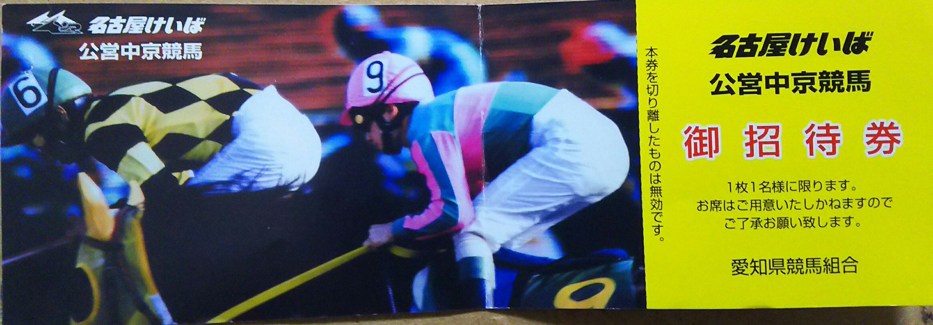★土曜の推奨レースは3つ。福島9レースの「ヒメタチバナ」は快勝。ここは相手を4頭に絞って3着まで的中!つづく中京10レースも「クライムメジャー」から、相手を3頭で「オメガタックスマン」への馬連33倍を的中!福島のメインも本命視した「ワンスインナムーン」が勝ってくれましたが、ここはヒモ穴作戦は不発。それでも土曜は、余裕でプラスで終われました。そして日曜。福島9レースの「ミッシングリンク」も勝ってくれましたが、3着馬がヌケ。まあ馬連でも12倍あったのは助かりましたが・・・福島10レースは、押さえのワイドのみ。はい。取りガミでした。『CBC賞』も本命にした「シャイニングレイ」が勝ってくれたのですが、二・三着馬はヌケ・・・「スノードラゴン」さんが、惜しい5着に追い込んで来たあたり、やっぱり直前の雨の影響があった気がします。1番人気の「メラグラーナ」は10着に惨敗。雨の他に直線で不利も。今回の二・三着馬は無理だったとしても「シャイニングレイ」の単複を買えなかったのは悔いが残るところです。『ラジオNIKKEI賞』は「ニシノアップルパイ」を狙いましたが、スタート直後から力んでました。なし崩しに消耗したようで、もう最終コーナーでは余力なし・・・勝った「セダブリランテス」は折り合いに不安なく、レースセンスも抜群。まだ底を見せてません。これからが楽しみです。★『佐賀ヴィーナスカップ』は、笠松の「ナムラカグヤヒメ」(6番人気)が3着に健闘。★月曜から『名古屋けいば・ルビーシリーズ』が開幕します。月曜・水曜・木曜・金曜の4日間の日程です。★名古屋けいば開催中!ネットケイバさんでも予想をしております。 元祖「大黒社ネット予想」は、ここをクリック。 ★写真は、2002年頃の名古屋の招待券。吉田稔ジョッキーと田中浩晃ジョッキー。