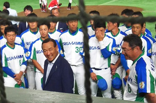 私の家族のみなさん(笑)一時のお休みを満喫させてもらっております。申し訳ないので、土曜のブログ(深夜に更新?)に、日曜のJRAで狙い目があれば、披露させてもらう予定です。水曜の東京ドームには、あの里見治オーナーがお見えでした。「セガサミー」の会長でもある里見オーナーは、2年ぶりに都市対抗野球の本戦に出場したチームの激励に来られたのですが、今回もミスターこと長嶋茂雄さんも(真ん中の写真)一緒でした。(一番上の右は、セガサミー初芝清監督)サトノヤキュウチームこと「セガサミー」は、快勝して2回戦進出!