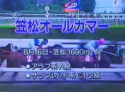 ★調べものが重なって、更新が滞ってしまいました。自慢できる高配当の的中もなく、あっと言う間に終わった感じのする「名古屋けいば・サードニクスシリーズ」ですが、最終日の11レース直前あたりからゲリラ豪雨に。雨中の最終レースでは、木之前葵ジョッキーの「エーシンマックス」が、名古屋では珍しい直線でのゴボウ抜きを決めました。大井の『黒潮盃』は的場文男ジョッキー騎乗の「ブラウンレガート」が1番人気に応えましたが、東海の二冠馬「ドリームズライン」(3番人気)は7着。ガッカリでもありますが、これが現実か。でも11番人気の「カンムル」 を2着に持って来た岡部誠ジョッキーで、儲けた方もおられるのでは。さて14日からは「笠松けいば・くろゆり賞シリーズ」が開幕します。もう15年近く前になるかな。「お盆特別シリーズ」って言っていた頃ですが『くろゆり賞』の他に『笠松オールカマー』って重賞がお盆開催で行われていました。下の写真は濱ちゃん騎乗、アラブの「アサヒノルーチェ」が圧勝した1997年のレース。(グリーンチャンネル・全国競馬便りより)15日には、ばん馬がやって来ます!昨年のばん馬のイベントの様子。くろゆり賞シリーズは、休まず場立ちする予定です。★JRA版「大黒社ネット予想」は、ここをクリック。12日の土曜の中央版「大黒社ネット予想」は、すでに配信しておりますが、13日・日曜分の予想は、土曜の深夜2時頃から遅くても当日の早朝までに配信いたします。ご了承願います。※配信情報はツイッター @daikokusya でもお知らせしています。 ※『サウナイーグル競馬塾』は夏休み中です。9月30日の土曜に再開予定です。