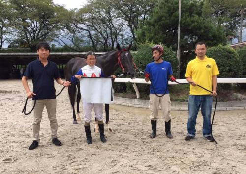 ★下の写真は、デビュー3戦目で初勝利した「サニーゴット」(8月16日・木村オーナー提供)お仕事で、オーナーは口取りに不在。ここに関連記事。「サニーゴット」は木曜の『秋風ジュニア』に出走。さすがに強敵ぞろいで、厳しいレースになりそうですが、距離が延びてから狙いたいと思っていたので(前走、買いそこねた・涙)どんなレースをするのか?注目しています。★お待たせしました。コバヒロさんの『2017ワールドオールスタージョッキーズ』観戦記の後編です。★笠松けいば開催中!netkeibaさんでも予想をしております。 元祖「大黒社ネット予想」は、ここをクリック。