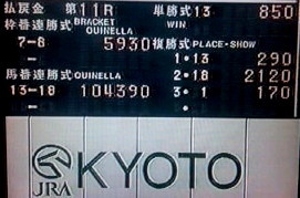 ★名古屋けいば・東海桜花賞シリーズが終了。『カツゲキキトキトは強いねえ~』先導役を務めた「ヴェリテ」の辻オーナーのコメント。さすがに、年頭あたりの『打倒キトキト!』は諦めたようです(笑)その『東海菊花賞』の予想は、◎→〇→▲で的中できましたが、安い配当でした。その他の予想は『LVR名古屋ラウンド』で本命視した7番人気の「ジェットソング 」や最終日の「レモンホープ」が激走してくれたり、最終日までプラスの回収率をマークできました。★さて日曜は『マイルチャンピオンシップ』が行われます。第1回からずっと見ているGIレースなのですが、もう34回目ですか!当初はGIの中で最も堅いレースと言われてましたが、オールドファンが忘れられないお約束として・・・浦和出身の「トロットサンダー」が勝った1995年の『マイルチャンピオンシップ』を(関西テレビより)『何と何と!メイショウテゾロが2着~』『何と、メイショウテゾロが一緒にくっついて来た~』杉本清アナの絶叫を思い出します。16番人気の「メイショウテゾロ」が2着に突っ込んで、大波乱となったのでした。★1995年11月19日京都競馬場 天候・晴れ 馬場・良。 1着「トロットサンダー」(横山典弘J) 2着「メイショウテゾロ」(上籠勝仁J) 3着「ヒシアケボノ」(角田晃一J) 4着「ビコーペガサス」(武豊J) 5着「トーワダーリン」(猿橋重利J)まだ馬連までしかない時代でしたが、その配当が10万4390円!翌日のスポーツ紙は勝ち馬より、大波乱になったことを(○○記者が的中!等)大きく伝えていたような記憶があります。はたして今年の『マイルチャンピオンシップ』は、堅い?荒れる?下は、そのガチガチ決着が多かった頃。京都競馬場のピーアールコーナー(現・ターフィーショップ)で購入したテレホンカード。★18日の土曜分の中央版「大黒社ネット予想」は、すでに配信しておりますが、19日の日曜分の予想は、土曜の深夜2時頃に配信いたします。JRA版「大黒社ネット予想」は、ここをクリック。※配信情報はツイッター @daikokusya でもお知らせしています。 ★今週は『サウナイーグル競馬塾』も開催します。私が塾長を務め、日曜の重賞レースを主に検討するイベントですが、ご参加の方々には「無料招待券」や「食事券」などをゲットできる特典も用意されています。『サウナイーグル』(男性専用)さんをご利用の方は、ご自由に参加いただけます。競馬初心者の方もベテランの方も、お気軽にお越しください!土曜夜の9時30分からです。(11月18日・25日と12月2日・23日に開催予定です)※「サウナイーグル」最寄の「名鉄知立駅」から「中京競馬場前」までは電車で10分弱という近さです。では、お休みの方もお仕事の方も、週末のご幸運をお祈りしております。