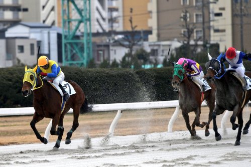 ★たいへんご挨拶が遅れましたが、新年おめでとうございます。年々、更新が滞り気味の当ブログですが、よろしくお願いします。年末の笠松開催ですが、初日の27日は雪の影響で5レース以降が中止に。(黒ゆりさん撮影)過酷な天候でも百瀬アナや裁決の方やカメラマンもプロとしてお仕事をやり遂げます。長江慶悟ジョッキーも復帰しました。これは雪のせいではないかと思いますが、笠松駅から競馬場へ道中でこんな事故が・・・まあ2年に1度くらいの割合で起こっているような気もします(ご注意ください)★そして2日目の29日『長江慶悟騎手やりました。場内からも拍手が起こります』(百瀬アナ)第5レースの「セルクルクルミ」で、長江慶悟ジョッキーが久々の勝利!年末のお客さんの多い中で結果を出せて良かった。この日のメインの『岐阜新聞・岐阜放送杯』は連勝中の「ラブアンバジョ」が順当勝ちでしたが、ヒモ穴に指名した「スーチャン」(5番人気)が3着に頑張ってくれました。スーチャンを応援している方も多いだけに、久々に競馬場でお会いした木村オーナーも、ホッとされたことでしょう。『東京大賞典』は◎「オメガパフューム」〇「クリンチャー」で決着も、3着の「ウェスタールンド」がヌケ。「ミューチャリー」も「アナザートゥルース」も消していたのに・・・相手を絞り過ぎたというより、1点で買えた馬単を選択しなかった自分の凡ミス。しかしながら年末の開催の先週の笠松開催時の園田競馬も含むトータルでのネット予想の回収率は125%(netkeibaさん調べ)とプラス収支をマークできました。年末の笠松は「人気の逃げ馬を消して穴っぽい差し馬を狙う」というスタンスで万馬券を数本、的中できたのが良かったです。でも正月の名古屋開催が惨敗でした(回収率42%)痛恨だったのは穴狙いの1月4日の第1レース。1番人気馬もアテにはならないとマルチ馬券を選択したのですが、4着馬との二頭軸にしたのが失敗で、勝った6番人気馬も2着の8番人気馬も買い目にありながら52万円馬券を逃す結果に。まあ馬券好きな人間には誰にも経験することなのですが・・・大晦日の『東海ゴールドカップ』は、吉原寛人ジョッキーのおやかた馬「ベニスビーチ」が『加賀友禅賞』に続く重賞勝ちと思われましたが、外から大原浩司ジョッキー鞍上「ウインハピネス」が差し切り勝ち!写真は駒野さん提供。騎手会長、おめでとうございます!いろいろあり過ぎた笠松けいばでしたが、大勢のファンの皆さんに支えられていることを再認識させられた1年でもありました。年末の笠松開催には多くの皆さんにお越しいただき、いや1年通してnetkeibaさんでの予想や、マルチコピー機からのご利用等、感謝しかありません。またお土産や差し入れを下さった方、写真を使わせてもらった方、ネタにさせてもらった方々など、いつもありがとうございます。★謹賀新年今年の自分の抱負なんて大層なものはありませんが、還暦を迎えたこともあり健康第一を心がけ、無理せずマイペースでいきたいと思います。そして年明けの『名古屋記念』は粘りに粘る「エイシンエンジョイ」を、ハナの差だけ前に出た「ナムラマホーホ」が勝利。写真はバンコロの渕さん撮影。★『笠松けいば・新春シリーズ』が開幕します。新春といえば全日がジャイアントシリーズで、新日が闘魂シリーズで、国際がパイオニアシリーズ。昭和かよ!ですが、そのうち平成かよ!ってなっていくのでしょう。笠松けいば11日の火曜からの連続4日間の開催です。重賞の『白銀争覇』は、13日の木曜です。また期間限定騎乗の皆さんのセレモニーも初日の11日に予定されてます。嬉しい悲鳴というか、多くのジョッキー達が笠松に来ていただけるようで、詳細は笠松けいばのホームページをご覧ください。都合により今開催の笠松本場での場立ちはありません。(ネットでの予想をご利用願います)最後にネットでの予想のお知らせです。現在、スマホでも見られるe-SHINBUN(イー新聞)さんの電子版やコンビニさんのマルチコピー機での予想の販売もしています。また1レース単位でも購入いただけるnetkeibaさんでも予想を配信しております。名古屋・笠松全レースと園田のラスト3レース を配信中です。予想はレース前日の夜10時15分頃にアップ する予定ですが、コンビニのマルチコピー機での予想の配信は、それより30分ほど遅れます。志のある各地からの勇士達が集まって賑やかになった笠松けいば。熱いレースにご期待ください。ではよろしくお願いいたします。