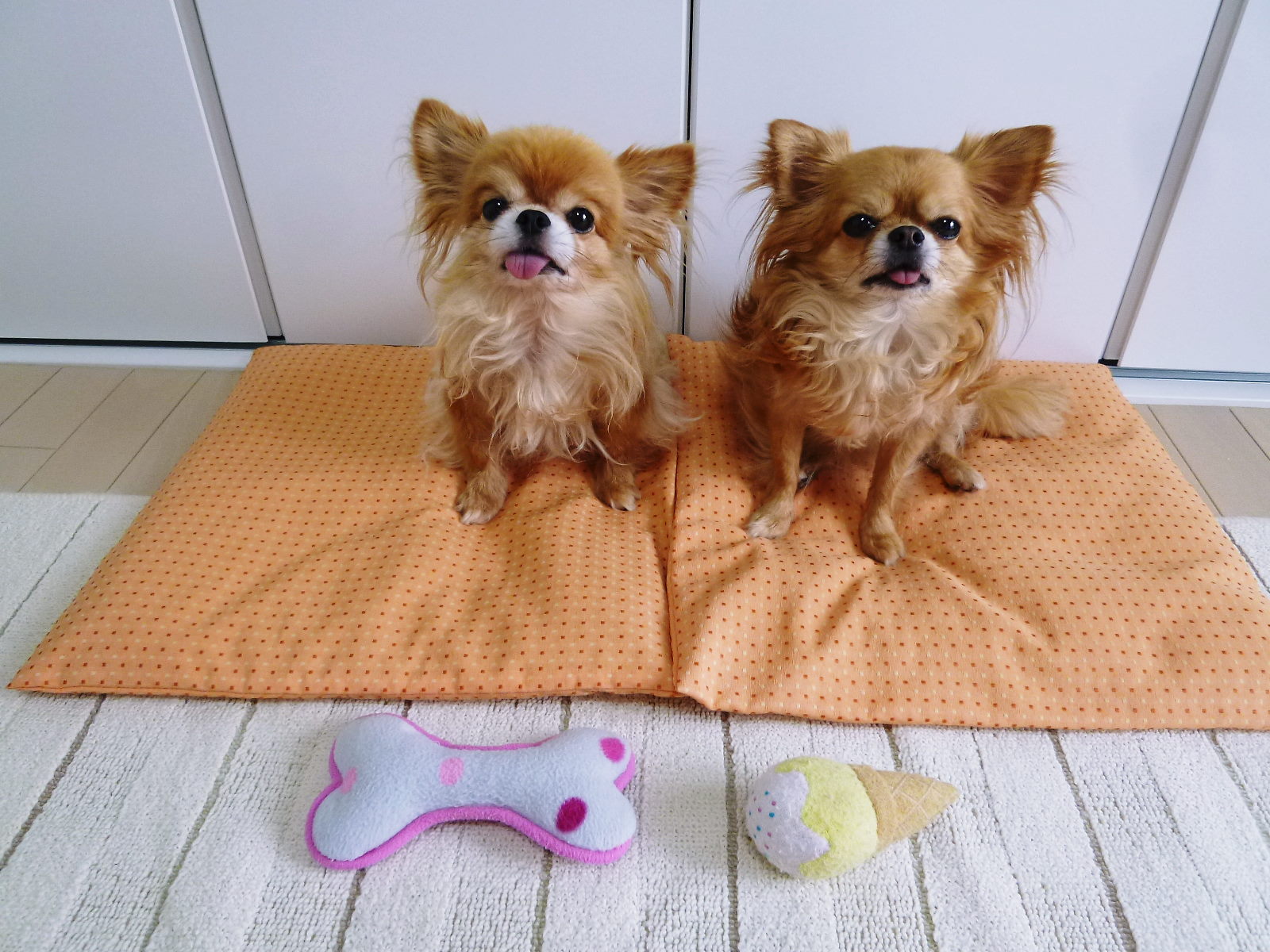 ★ お気に入りのおもちゃで遊んだよ ★鈴ちゃん 琴ちゃん☆★☆ 琴&鈴ちゃんのコメントです ☆★☆あのね・・・この所、暑くてお散歩に行けないからちょっと運動不足・・・だから↑のお気に入りのおもちゃで遊んだよ~~~あたし(鈴)は、ホネ型のおもちゃが大好き♪あたし(琴)は、アイスクリーム型のおもちゃが大好き♪★ やっぱり新橋は暑いね~~~ ★毎日暑いですね~~~連日の猛暑で“ヘロヘロ”状態です特に新橋は暑いようで・・・今日は午前中にすでに36度もありましたやっぱり新橋は暑いね~~~*****************ブログランキングに参加中です よろしかったら↓を“ポチッ!”してね♪ ☆★☆琴&鈴ちゃんニット☆★☆☆★☆ 旅行日記 ☆★☆☆★☆ お散歩日記 ☆★☆