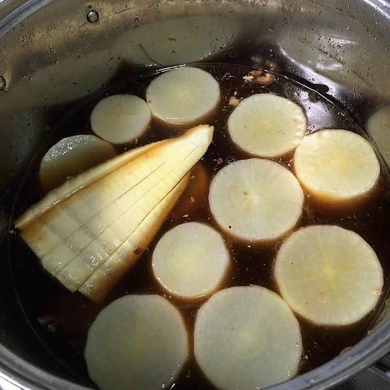 『砂糖』『醤油』を入れて 2時間くらい煮る 火を止めて一晩おく |