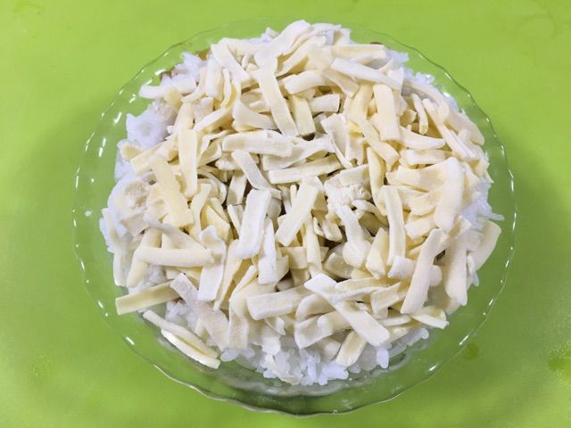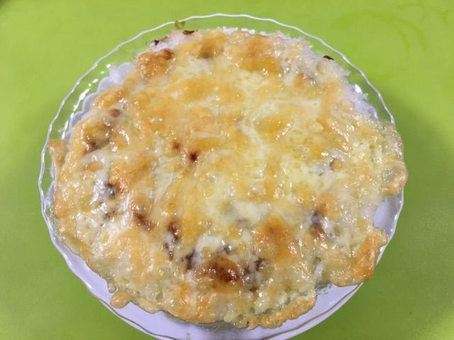 上にとろけるチーズをのせて オーブンで 焼き目が付くまで焼く |