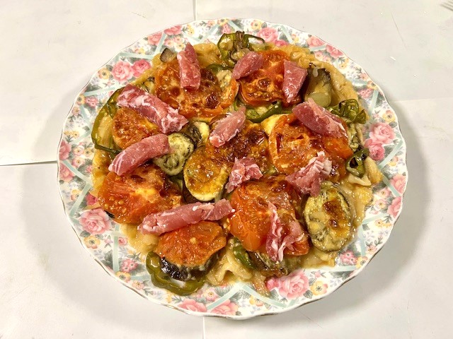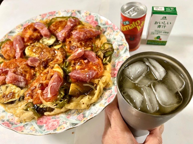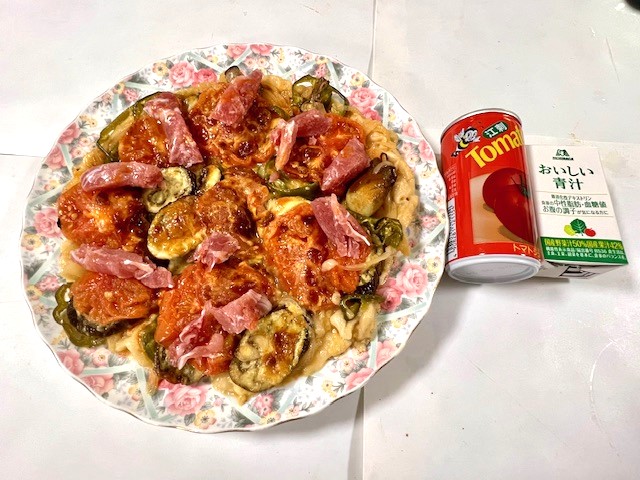 今日の夕食は、『野菜生ハムピザ』です