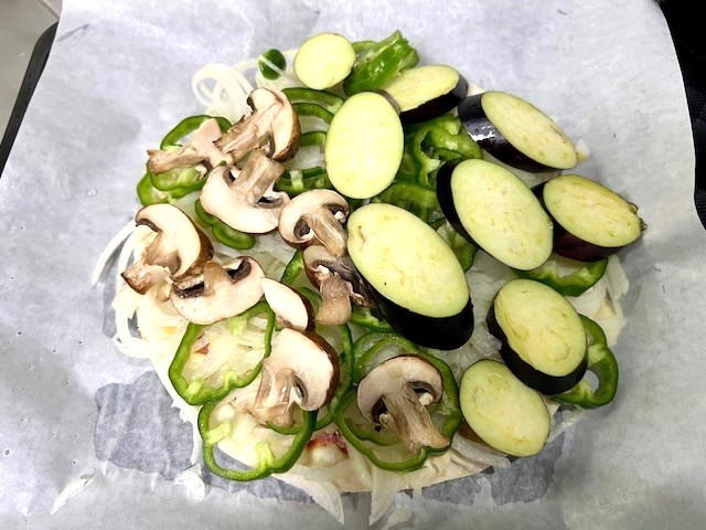 半分に「ナス」・半分に「マッシュルーム」のせて