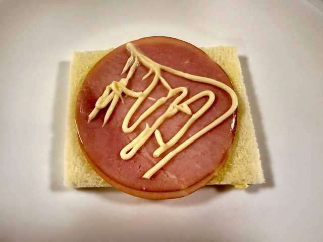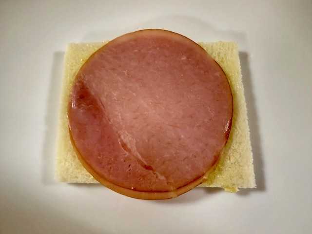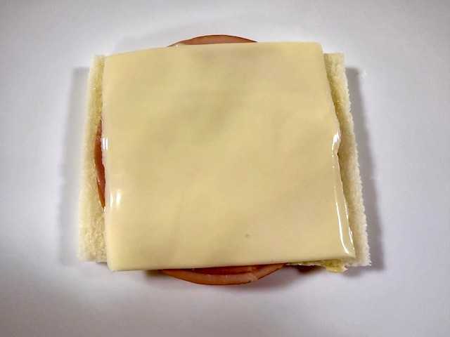 ハム・マヨネーズ・スライスチーズを挟んでラップに包んで