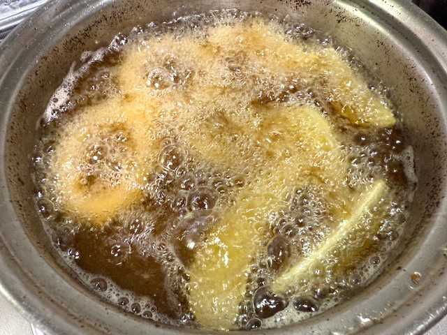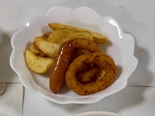 「フライドポテト」「オニオンリングフライ」「ウインナー」を揚げて