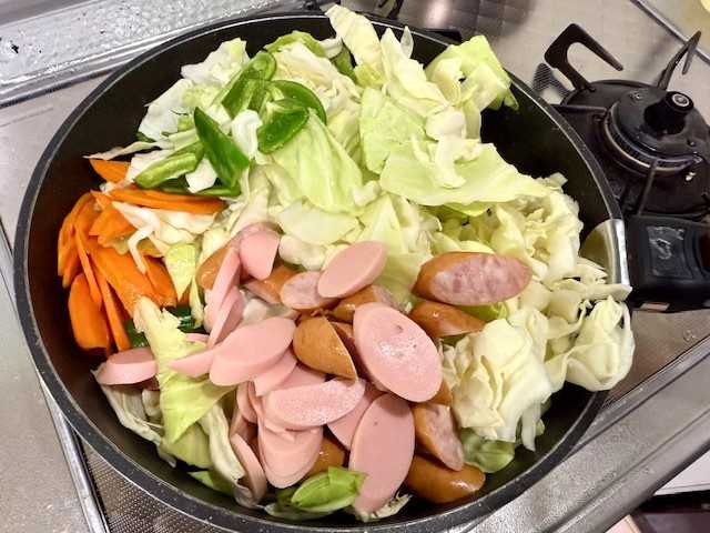 キャベツ・にんじん・ピーマン・ウインナー・魚肉ソーセージを