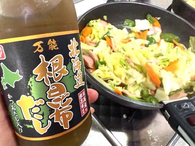 火が通たら料理酒・みりん・根昆布だし・付属のソースで味付け