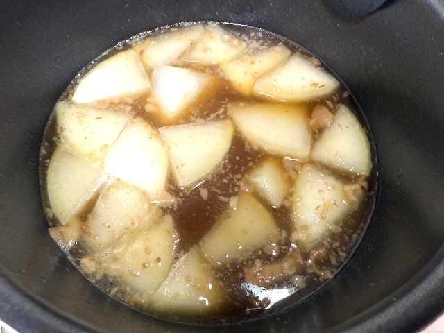 煮汁で「だいこん」を煮て具を戻して・・・