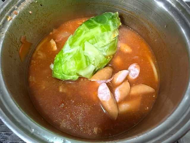 「キャベツ」&「ウインナー」を入れて煮て・・・