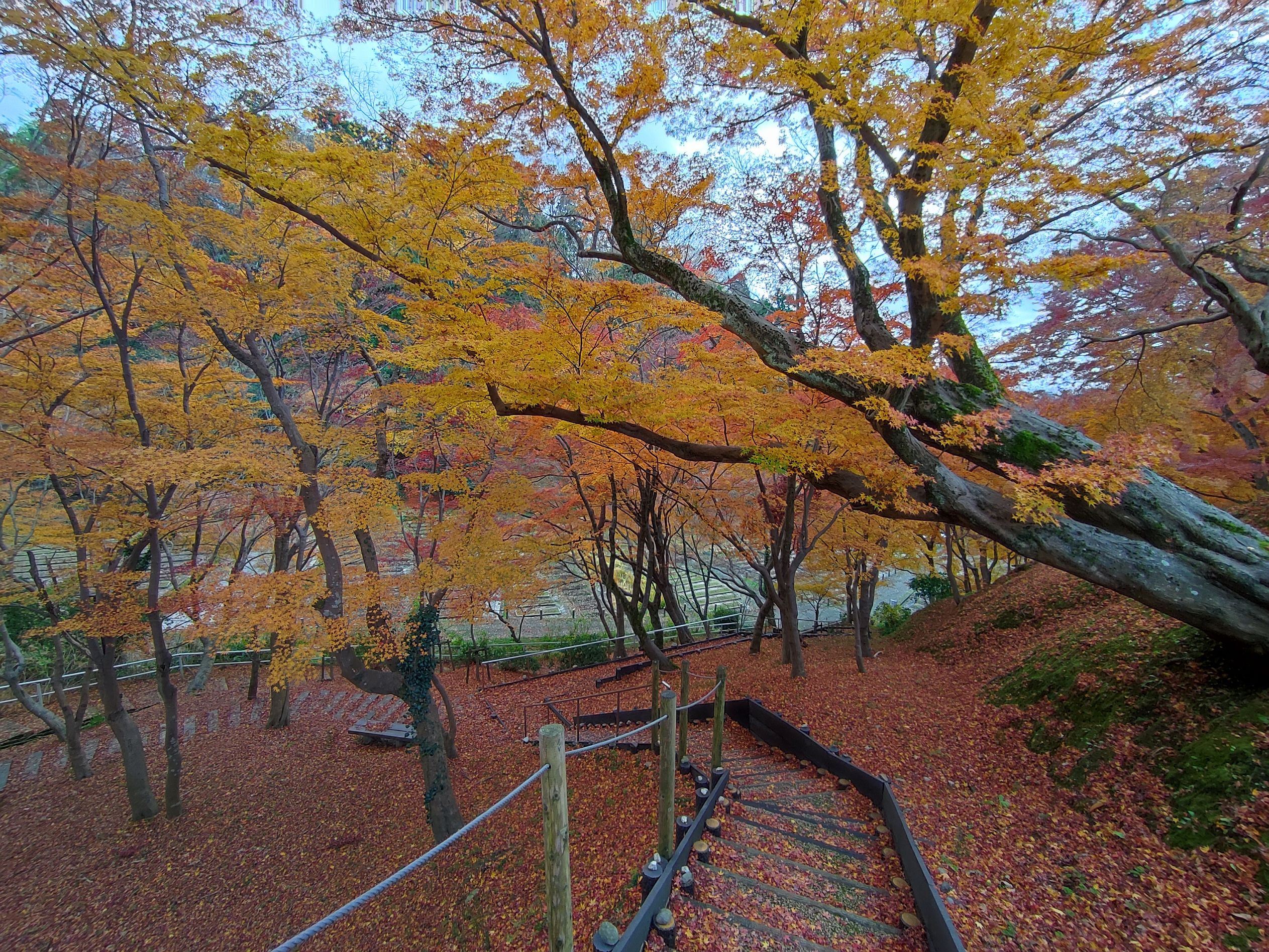 12月4日生まれて初めてユーザー車検に挑戦してみました書類等を提出して受付を済ませたらいよいよ検査場です撮影禁止だったので写せませんでしたがかなりスリリングでした乗ったままで2~3m位もリフトされて高所恐怖症では無いけれど怖かったです・・・おまけにエンジンを切った状態でハンドルを目一杯左右に何度も切らされ高負荷の筋トレ状態です何もかもが初めてだったので刺激的でシナプス増えちゃってくれたかも~受付の人達は最初に当たってしまった一人のオバサン以外は皆親切で優しかったです始めは窓ガラス用の青シールだけを張りました透明シールの方はナンバープレート用って書いてあったので・・・何日かしてやっぱり変な違和感がどうしても拭えなかったのでYou Tubeで確認してみたら大変な間違いを犯してた事に気付かされましたでぇ~貼り付けた窓用シールを引っぺがして正しくシールをセットして張り直しましたシールの残り捨てなくて良かった~ってつくづく思いましたまた断捨離から遠ざかりそうですそれにしてもあの複雑怪奇な車検のシール初めてでちゃんと正しく貼れる人って居るのかなぁ🤔❓ま、いっか〜誰にでも最初は有る竹がパラレルしてます🌴🌴🌴頑張って階段登って見ました😤ズームしたら海までしっかり見えました 車検も何とか通ったしぃ~気分は上々だったので序に紅葉狩りに寄って見ましたもう遅いかと思ったけど中々の見頃でした紅葉綺麗〜🍁紅葉絨毯だぁ〜い🍁🍁🍁此方は紅葉のトンネルだぁ〜い🍁菖蒲園です🌿カラスが一杯居て少し怖かったです…😭何かを脇芽も振るわず食べてました🍙菖蒲園の入口で青い鳥が視界を横切って行きましたズームで見ようと頑張ったけど動きが早くて見れませんでした紅葉が綺麗過ぎて涙が出そうになりました車検の合格と綺麗な紅葉本当にありがとうございました