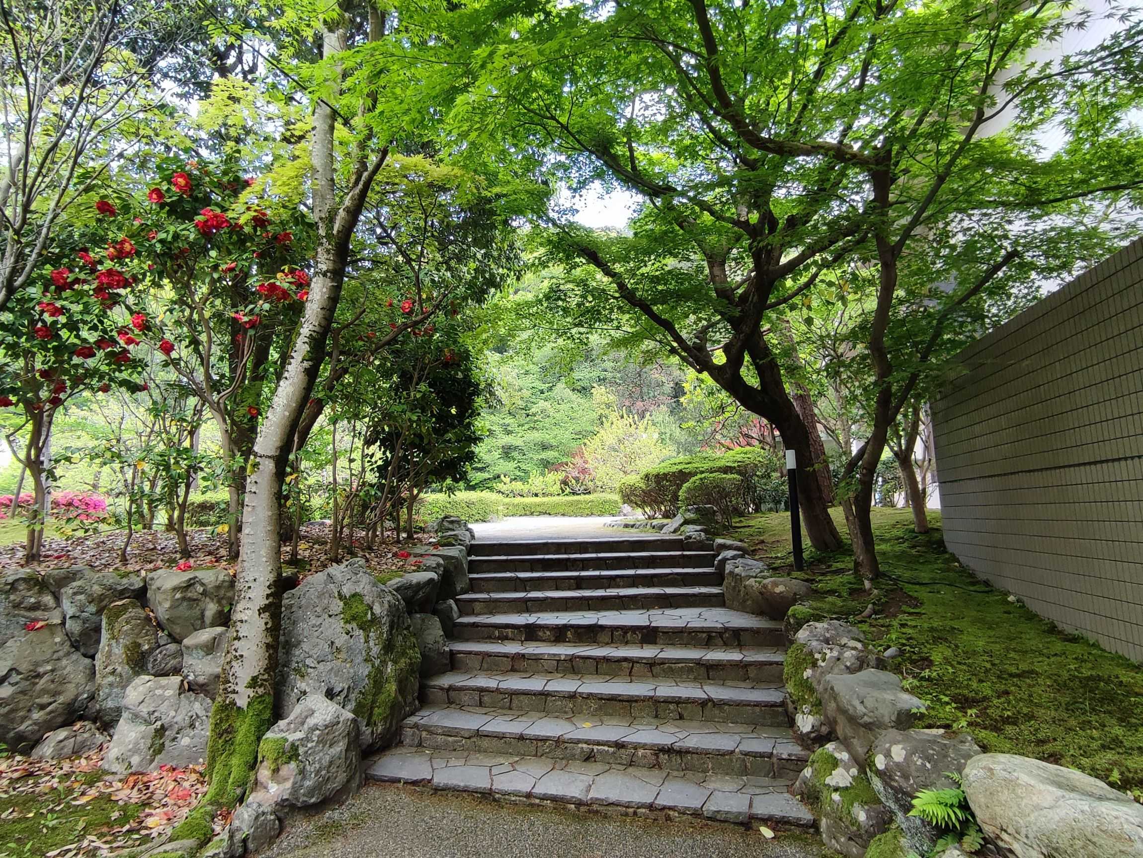 4月29日鈴木大拙館から緑の小径を通って~よそ見をしながら美術の小径を目指しました到着しました辰巳用水が流れてます中々のキツイ階段なので途中までにしておきました振り返って見ると結構頑張って上って来てました偶々だけど旧中村邸の春の一般公開してたので寄って見ましたよそ様のお家の中を見るのはどうかと思いましたが滅多に無い機会なので公開するだけあって広くて立派なお宅でした畳に穴が開いてて本格的なお茶室になってましたお2階から見たお庭です木が一杯で癒されますお花が咲いてる木も有って良い眺めでした🤗苔が良い塩梅に生えてました🌱離れも有りました🏡お庭は邸が用意した灰色の履物で回りました狭いのか広いのかよく分からない感覚になるお庭でした次は中村記念美術館に行きましたぱっと見には平屋に見えますがお2階が有りました後でAIに誰の設計か尋ねたら4者4様の答えが出ました・・・やはりAIは嘘つきで油断も隙もありません中はこんな感じでした気持ちの良いお散歩一杯させて下さってありがとうございました