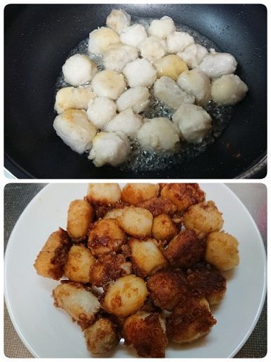 そこに砂糖醤油を入れ、からめるように焼きました。