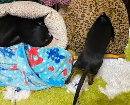 ワン達が鼻スタンプで穴をあけたり