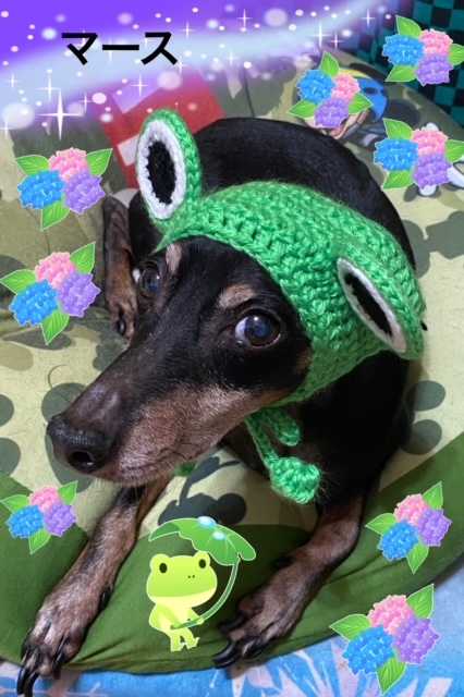 可愛いカエルさんのお帽子をいただきました