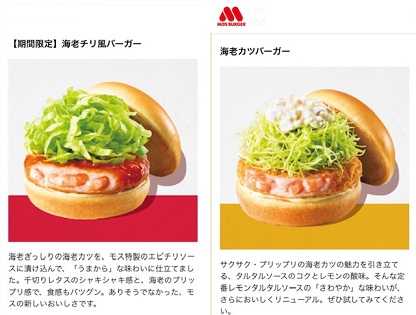 海老カツバーガーと期間限定品の海老チリ風バーガー。