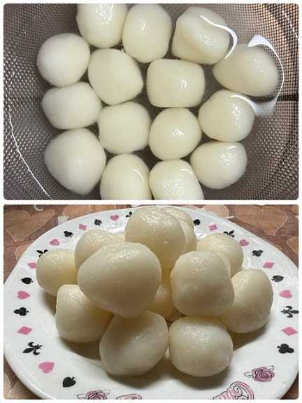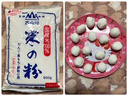 米粉100gにぬるま湯100ccを入れて混ぜお団子に。