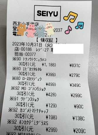 レシートの一部ですが~