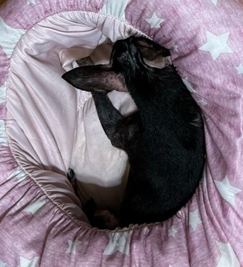 クッションは洗濯したので、夏用ベッドにいるマース。