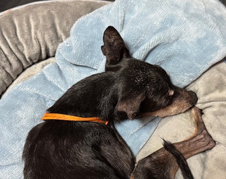 毛布を敷いて、ベッドにいるルーク。体が柔らかいね~