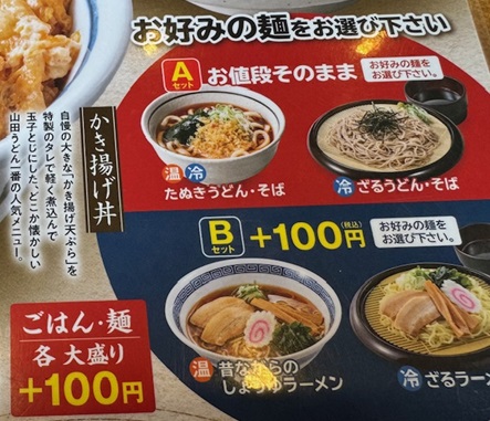 セットの麺類は選べるのですが、温かいたぬきうどんにしました。