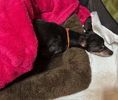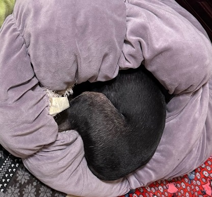 上半身はホイホイから出てるけど、鼻先隠して寝ているレイア。