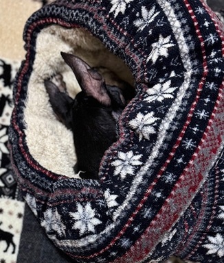 レイアは、鼻先をちょっとだけ出して寝ています。