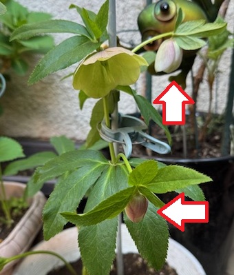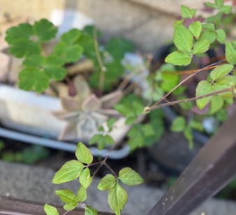 奥の方の葉っぱはオダマキで、手前の蔓はクレマチスです。