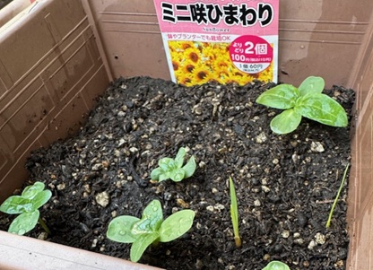 ミニ咲ひまわり~奥の1ヶ所、まだ芽が出てこないけど