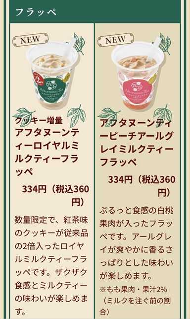 「アフタヌーンティーピーチアールグレイミルクティーフラッペ」