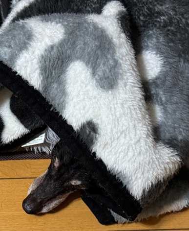 毛布を掛けてあげたら・・・床に顔を出して寝ていました